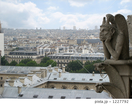 巴黎圣母院大教堂石像鬼和巴黎都市風景