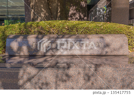 豐田汽車公司銘牌和透過樹木灑下的陽光 [東京總部,文京區,東京]