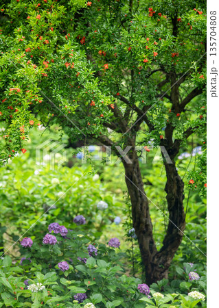 美麗的石榴花在翠綠的襯托下更顯絢麗。