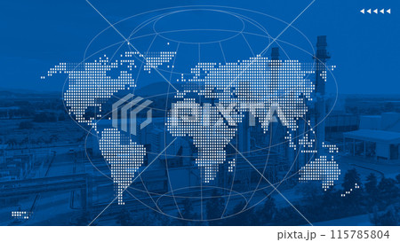 Power plant petroleum gas oil chemical factory overlay world map for worldwide business industry logistics concept.