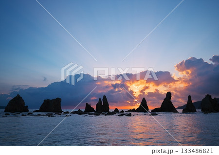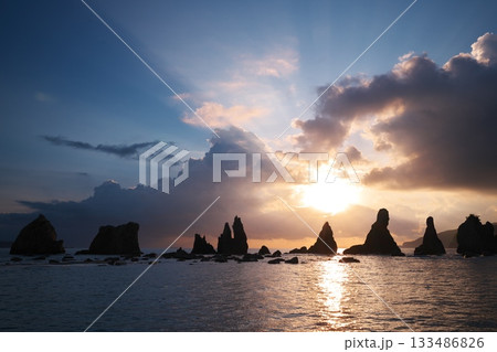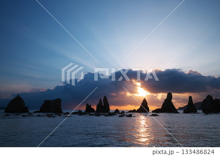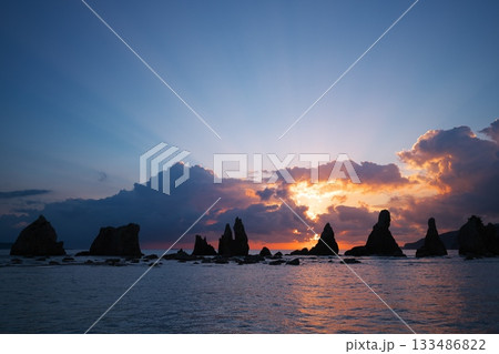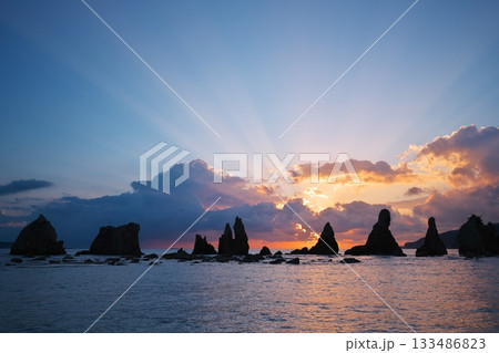 沐浴在旭日天使階梯中的橋鬼岩
