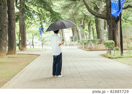 一個人被清新的綠色微風吹過,一個人在公園裡見面,一個人拿著雨傘