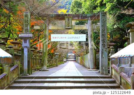 秋天的京都船岡山,清晨的建國神社大鳥居