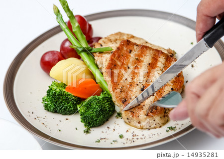 Delicious juicy turkey or chicken steak with salt, spices and herbs