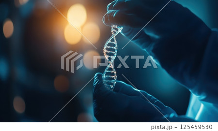 DNA helix model on table with blurred background . Medical Research Science Breakthroughs concept