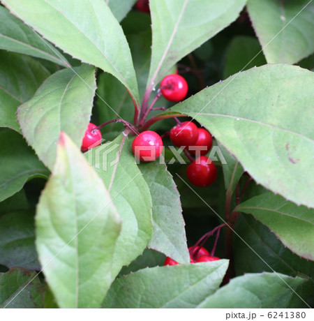 寒冷的早晨,紅色的果實,兩簇大果樹叢。