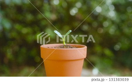 生態圖:一個陶罐和一棵長著兩片葉子的幼苗