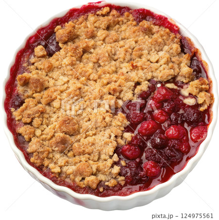 Traditional American apple cranberry pie, topped with crumbled dough and pecan, vertical, top view