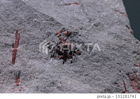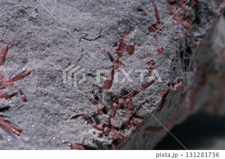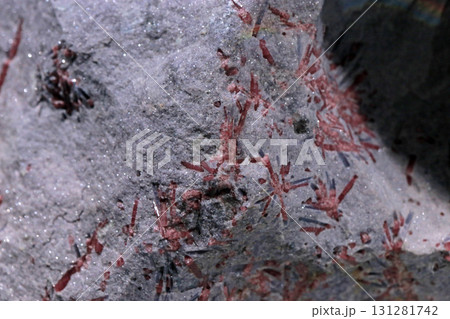 在博物館裡拍攝產地是美國的紅電氣石特寫照片