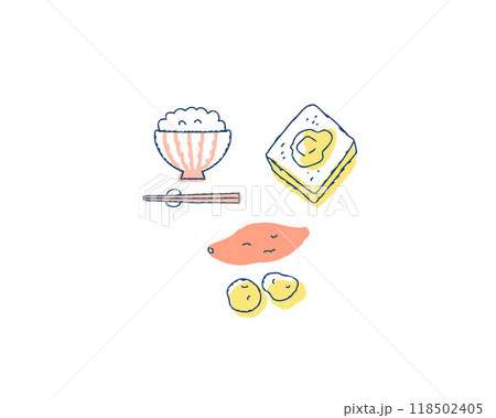 一組高碳水化合物食物的插圖(日文)