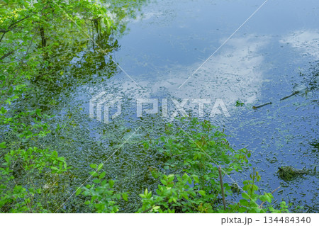 Reflection of clouds in the water. Abstract background