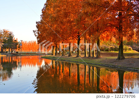 論會公園、紅葉的水杉(愛知縣豐橋市)