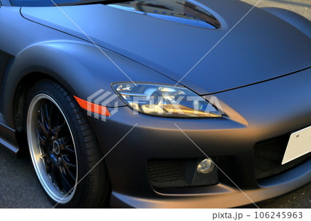 磨砂黑電動跑車跑車的正面圖像。原創設計
