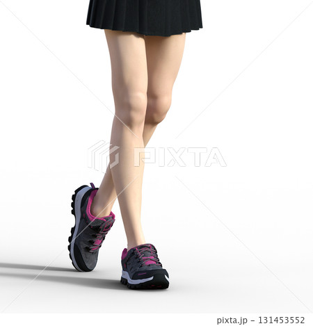 穿著迷你裙和運動鞋的女人的腿