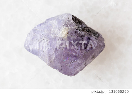 sample of rough tanzanite mineral on white marble