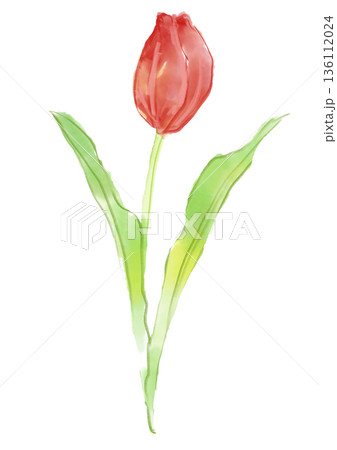 手繪水彩插畫,描繪了盛開的紅色鬱金香花。