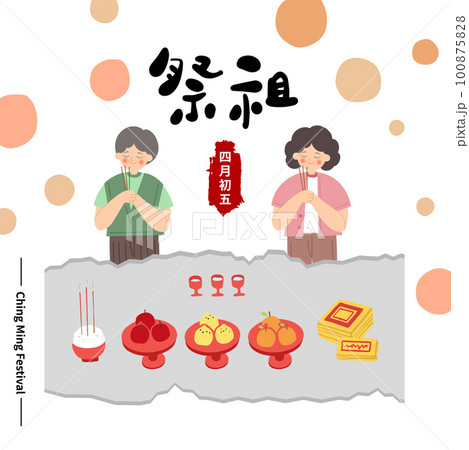 Tomb sweeping festival. Asian people worshiping ancestors, Chinese text means worshiping ancestors.