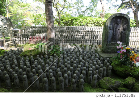 花園中陳列的地藏菩薩像。面容慈祥的石地藏菩薩像。