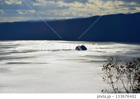 摩週湖上的神珠島和摩周山