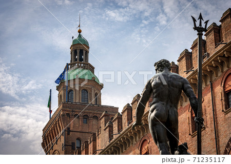Accursi Tower and Accursio Palace with Neptune Statue - Bologna Italy