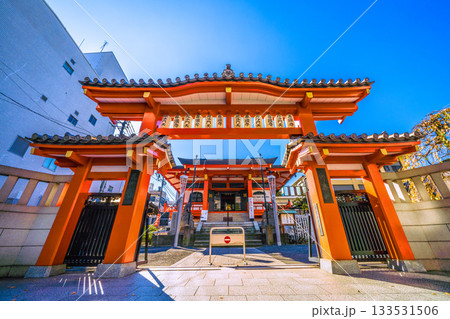 日本東京的城市景觀:傳統與現代交融的城市…充滿氛圍的城市。清晨的神樂坂,瀰漫著濃鬱的氣息。遠眺毘沙門天及其他寺廟。