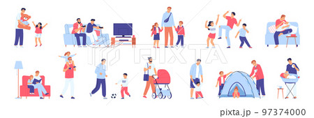 Happy Fathers Day Vector Illustration with Father and his Son or Daughter Playing Together in Flat Kids Cartoon Background Design