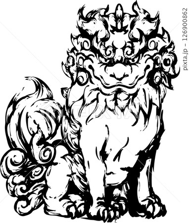 沖繩傳統護身符「Shisa」一對的彩色插圖