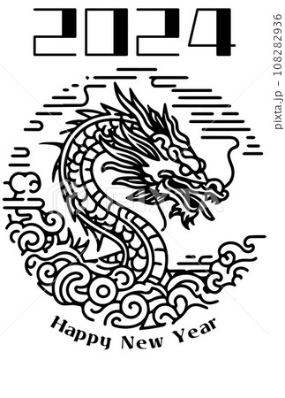 新年賀卡2024龍年明信片模板,簡單的單色龍插圖