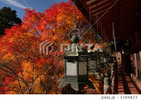 [奈良縣]談山神社(十三層寶塔和神社崇拜場所)的秋葉點亮