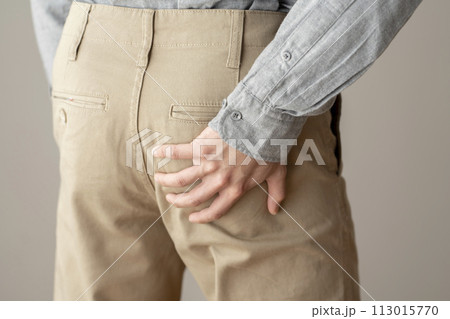 屁股疼痛的男人身體部位被割傷