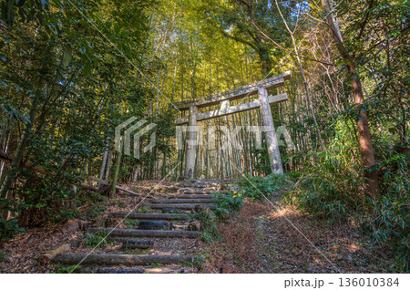 矗立在森林中的一座小神社門