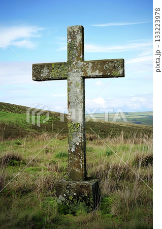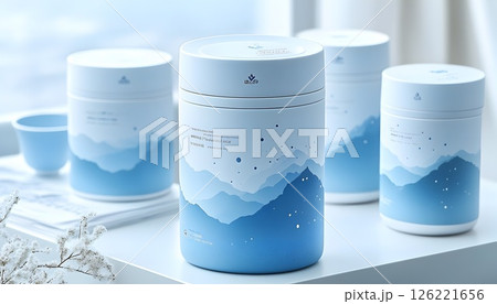 A serene lake surrounded by mountains, with reflections of the clouds and trees in the water., Generative AI, illustration