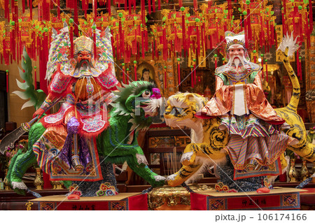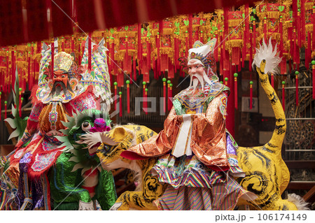 節慶現場的場景,屋內有佛像、香燈和供品。