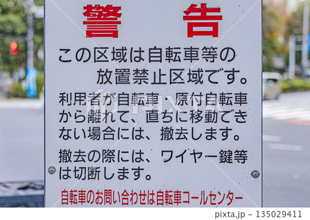 日本東京城市景觀:“禁止停放自行車。一經發現,將立即清除。”