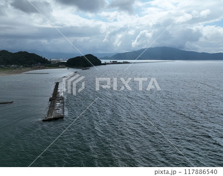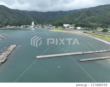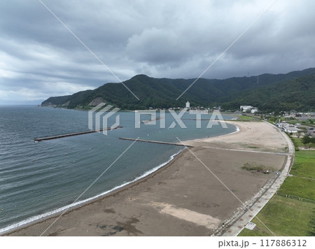 無人機空中拍攝福井縣美麗的瑪麗山海灘