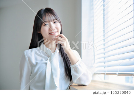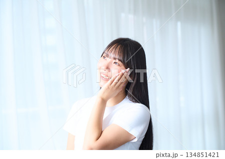 一位二十多歲女性的美麗肖像,她伸展著身體