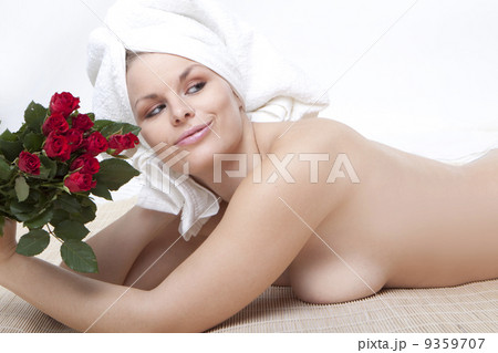 可愛的裸體女人臉朝下躺著接受按摩簡單的插圖向量