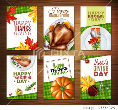Realistic Turkey Thanksgiving Day Banner Set