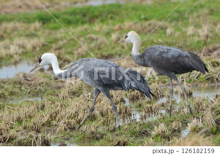 秋天稻田裡尋找食物的鸛