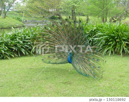 台灣花蓮-2025年10月4日:公共印度孔雀開屏,蜀峰鎮理想國旅遊酒店