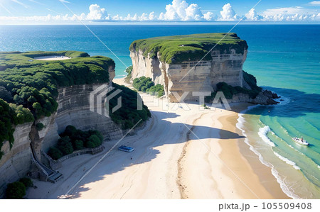 仲夏的陡峭懸崖和私人海灘