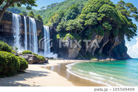瀑布、森林、大海和白濱