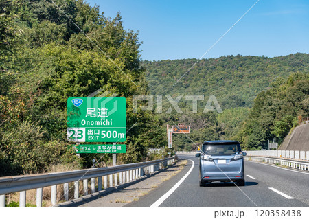 廣島縣尾道市山陽高速公路尾道IC附近行駛的客車