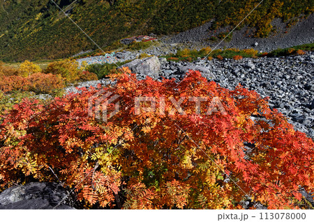 從飯豐山脈的烏帽子山眺望,主山脊步道呈現一片紅葉