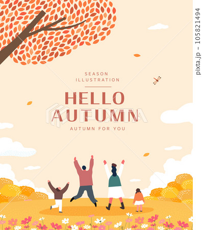清新的藍天和秋葉的風景插圖