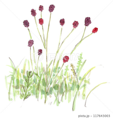 夏至秋花的水彩畫,圓形的紅色地榆花