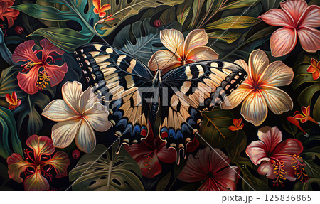 A stunning black and orange butterfly perched delicately on vibrant flowers. Generate AI