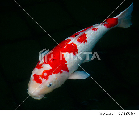 鳶尾花和兩條鯉魚_水面_黑鯉向下_紅鯉向上_魚鰭很華麗