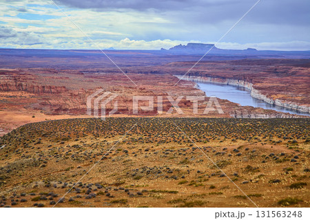 Colorado River Glen Canyon Red Sandstone Cliffs Panoramic High Vantage View