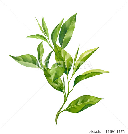 Green tea leaves illustration, isolated on white background